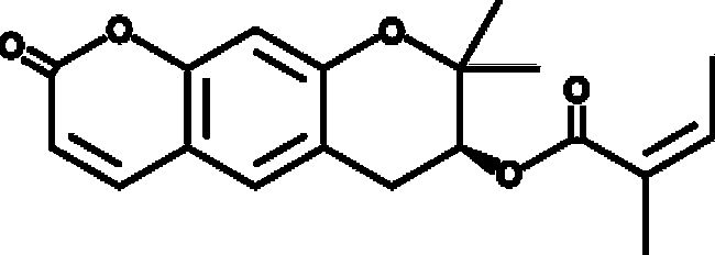 A pyranocoumarin with diverse biological activities; inhibits the growth of various cancer cell lines (ED50s = 24-56 μM); decreases estrogen-stimulated growth of MCF-7 breast cancer cells; activates PKC purified from rat brain; selectively inhibits CYP1A1/2 over CYP2D15 and CYP3A12 in canine liver microsomes (Kis = 67.56, 872.5, and 853.9 μM, respectively); reduces Aβ25-35-induced cytotoxicity and MDA production and increases SOD and GPx activities in PC12 cells; has antinociceptive activity in the tail flick and hot plate tests and reduces acetic acid-induced writhing in mice at 200 mg/kg