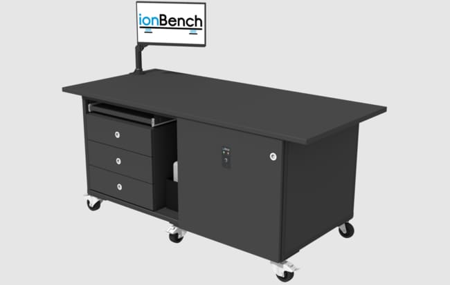 IONBENCH CORPORATION Dedicated Mobile Lab Bench, 190 cm W x 88 cm D x 56 cm H, Integrated Pump Noise-Reduction Enclosure, Patented Vibration Dampening, Casters, Overheat Alarm, Tubing & Solvent Storage