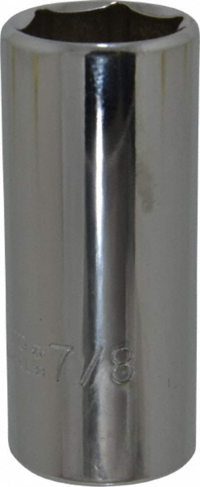 MSC Proto J5028H 7/8", 3/8" Drive, Deep Hand Socket 6 Points, 2-3/4" Overall Length, Chrome Finish