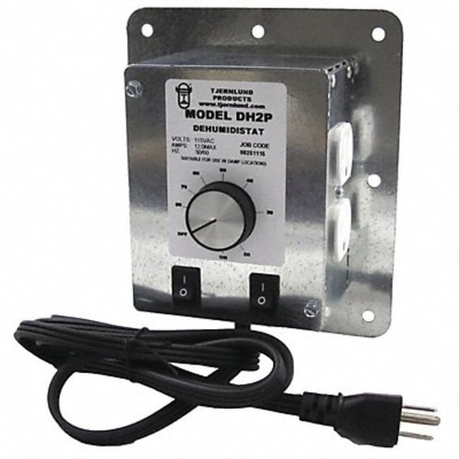 The Tjernlund Dehumidistat Wall Mount is a wall-mounted humidistat that controls the operation of dehumidifiers, ventilation fans, and other humidity-controlled devices. It has an adjustable humidity setpoint from 30% to 100% RH. The dehumidistat features a rugged plastic enclosure and measures 4.5 x 2.75 x 1.25 inches. It requires a 24VAC power source and can switch up to 5 amps at 24VAC. The dehumidistat includes a built-in differential of 5% RH to prevent short cycling. It comes with a 6 foot power cord and has a limited 1 year warranty from Tjernlund.