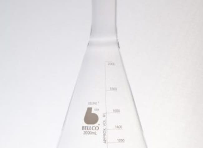 Bellco Glass, Inc. Manufactured for type 1 class a Borosilicate glass. Ideal for growing, storing, and mixing of aerobic and anaerobic cultures. Graduated to approximate volumes. Size: 2l Closure: 38 Dimensions: 158x295 Stainless steel closure (2005 series)