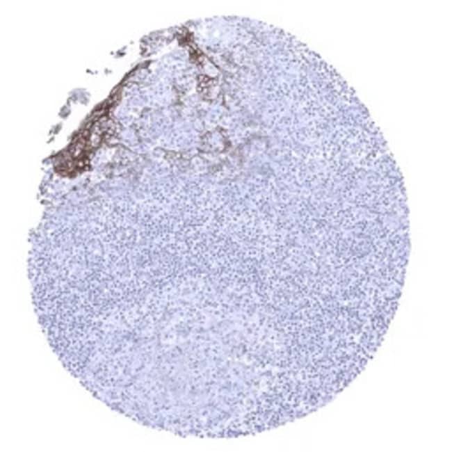 The Desmoglein 3 antibody [MSVA-543M] HistoMAX™ (GTX04468) is a Mouse Monoclonal antibody in the GeneTex HistoMAX portfolio. The antibody is extensively evaluated for IHC-P using formalin-fixed human normal tissues (more than 70 different sections) and cancer tissue arrays to guarantee specificity and best-in-class performance. Information regarding both manual and autostainer staining protocols are available.Figure Legend: IHC-P analysis of human tonsil tissue using GTX04468 Desmoglein 3 antibody [MSVA-543M] HistoMAX. In the tonsil a moderate to strong desmoglein 3 immunostaining occurs in squamous epithelial cells of crypts. All other cell types are desmoglein 3 negative.