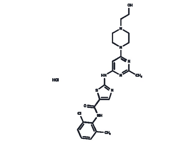 Also available in 100 mg 1 mL 10 mM (in DMSO) and bulk. Please contact Fisher for quotes. Dasatinib hydrochloride (BMS-354825 HCl) (BMS-354825) hydrochloride is a highly potent ATP competitive orally active dual Src/Bcr-Abl inhibitor with potent antitumor activity. The Kis are 16 pM and 30 pM for Src and Bcr-Abl respectively. Dasatinib hydrochloride hydrochloride inhibits Bcr-Abl and Src with IC50s of <1.0 nM and 0.5 nM respectively. Dasatinib hydrochloride hydrochloride also induces Apoptosis and Autophagy. purity: 99%