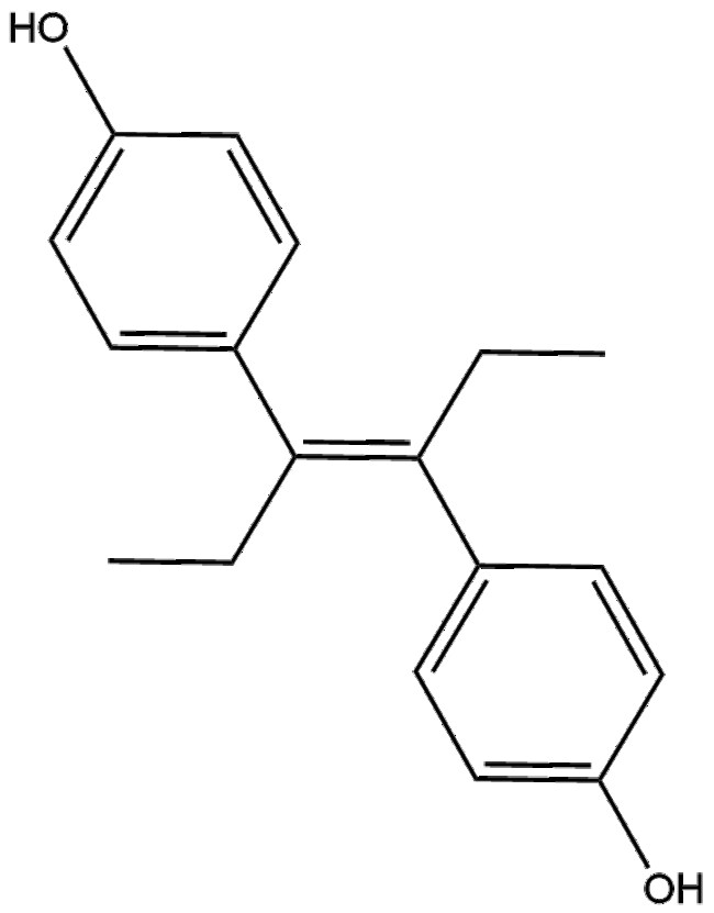 Diethylstilbestrol (56-53-1) is a small-molecule inhibitor targeting 11 -hydroxysteroid dehydrogenase type 2 (HSD11B2) and interacting with estrogen receptors It is designed to modulate hormonal signaling and cellular steroid metabolism thereby regulating processes such as apoptosis and autophagy Diethylstilbestrol exerts its biological activity primarily through the inhibition of HSD11B2 and modulation of estrogen receptor-mediated signaling In cell-based studies Diethylstilbestrol induces oxidative DNA damage and triggers apoptotic responses in spermatogonial stem cells as well as promotes autophagy in thymic cells Based on these pharmacological properties Diethylstilbestrol holds research potential in exploring estrogen receptor-mediated signaling hormone-regulated molecular events apoptosis pathways and autophagy mechanisms in vitro