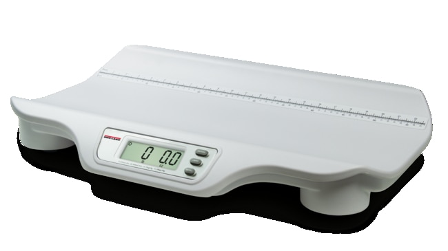 Medical Scale, Rice Lake Weighing Systems, Baby Scale Digital Model RL-DBS 44lb x 0.5oz (20kg x 10g) with 120V AC Adapter, LCD display, & built in measuring tape 0-22.5 in (0-57cm), 4 AA batteries (not included)