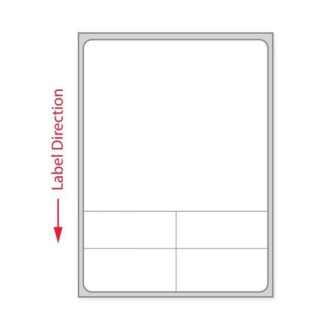 - Large-format direct thermal paper labels with strong permanent adhesive for secure application