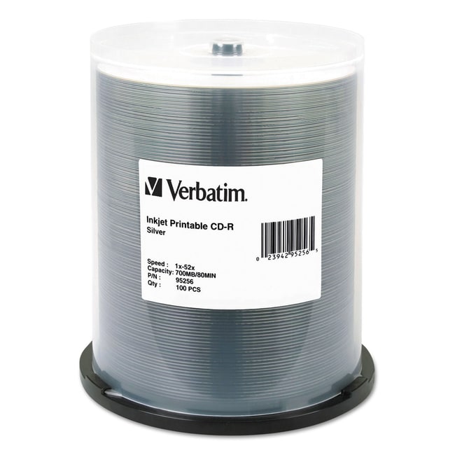 Verbatim CD-R Printable Recordable Disc 700 MB/80 min 52x Spindle Silver 100/Pack