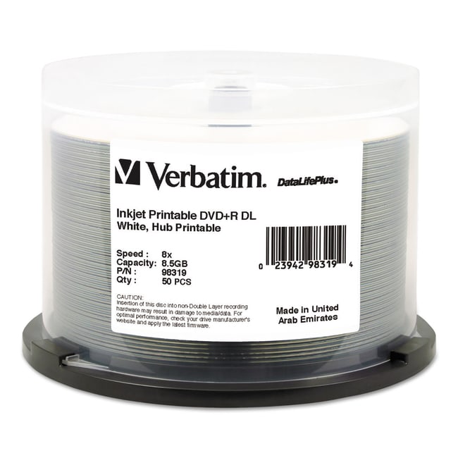 Verbatim DVDplus R Dual Layer Printable Recordable Disc 8 5 GB 8x Spindle White 50/Pack