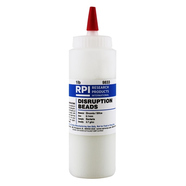 Research Products International Corp Disruption Beads for Bacteria, 0.1mm Bead Size, Zirconia/Silica Beads, 3.7 g/cc Density, 1 Pound Bottle