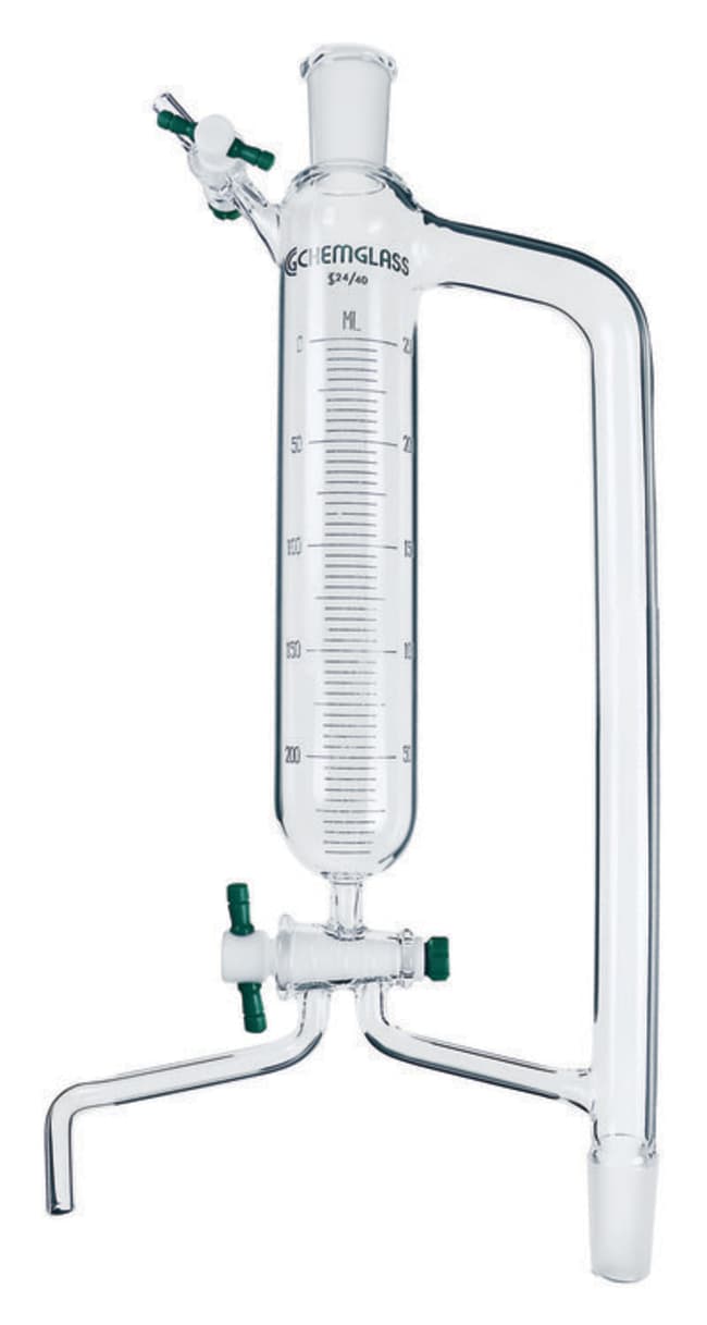 Chemglass Life Sciences Distilling Receiver, 250mL, Solvent Recovery, Graduated, 24/40 Joint Size, 2mm PTFE Stopcock, 4mm 3-Way PTFE Stopcock, Approx. 415mm Height x 185mm Width