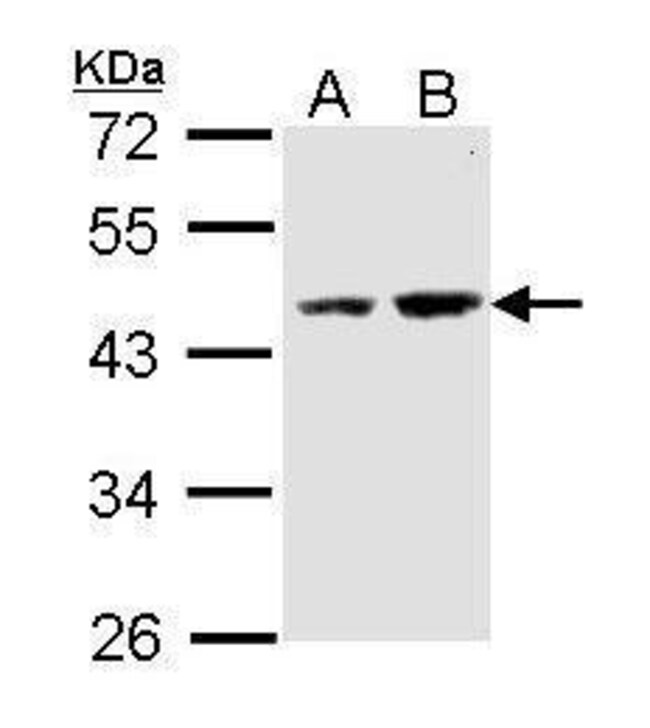 Recommended positive controls: H1299, HeLa, HepG2, Molt-4, Raji. Predicted reactivity: Mouse (89%), Rat (90%), Pig (91%), Rhesus Monkey (99%), Bovine (94%). Store product as a concentrated solution. Centrifuge briefly prior to opening the vial.