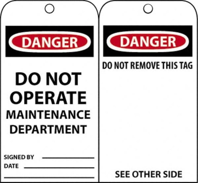 Accident Prevention Tag: Rectangle, 3" High, Unrippable Vinyl, "Danger"