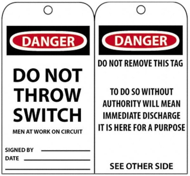 Accident Prevention Tag: Rectangle, 3" High, Unrippable Vinyl, "Danger"
