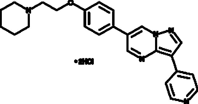 A potent, reversible inhibitor of AMPK (Ki = 109 nM); dose-dependently inhibits the bone morphogenetic protein type 1 receptors ACTR-I (ALK2), BMPR-IA (ALK3), and BMPR-IB (ALK6); downregulates the Akt/mTOR pathway to induce autophagy in U251 human glioma cells