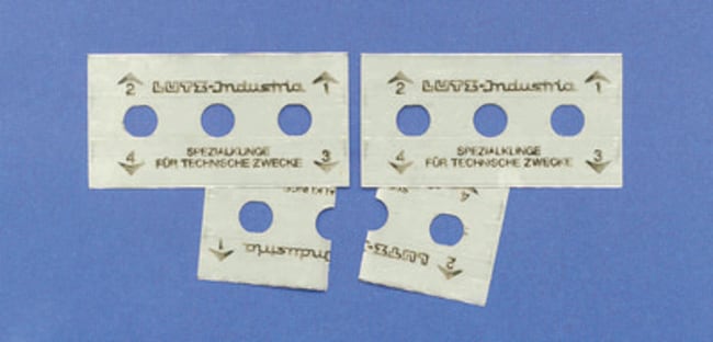 Breakable double edge razor blades made from carbon steel. The blades break easily and cleanly. Rectangular shape, square ends. Breakable.