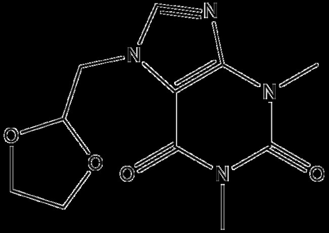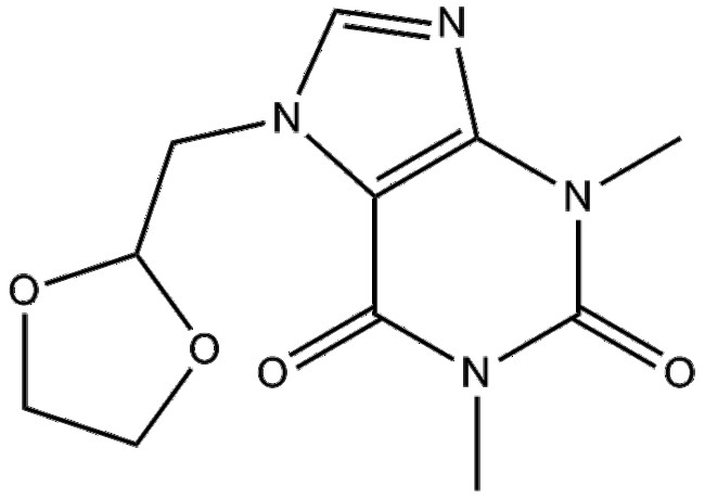 Doxofylline (CAS 69975-86-6) is a synthetic xanthine derivative that acts as a selective phosphodiesterase inhibitor By inhibiting phosphodiesterase enzymes doxofylline increases intracellular cyclic AMP levels leading to bronchodilation Unlike other xanthine compounds it exhibits reduced cardiostimulatory activity and a distinct pharmacological profile Doxofylline is widely studied for its potential to alleviate bronchoconstriction and inflammation in preclinical models of respiratory diseases including asthma making it a valuable tool for investigating airway smooth muscle signaling and respiratory pharmacology