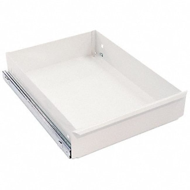 The Grainger Approved 14V871 is a 4-drawer steel cabinet with ball-bearing drawer slides for smooth operation. It features a durable powder coat finish and has a weight capacity of 200 lbs per drawer. The cabinet has overall dimensions of 52"H x 18"W x 22"D. The drawers have internal dimensions of 3"H x 16.5"W x 19.5"D. This cabinet provides enclosed storage with locking drawers to secure contents. It requires minor assembly and is backed by a 5-year limited warranty from Grainger.