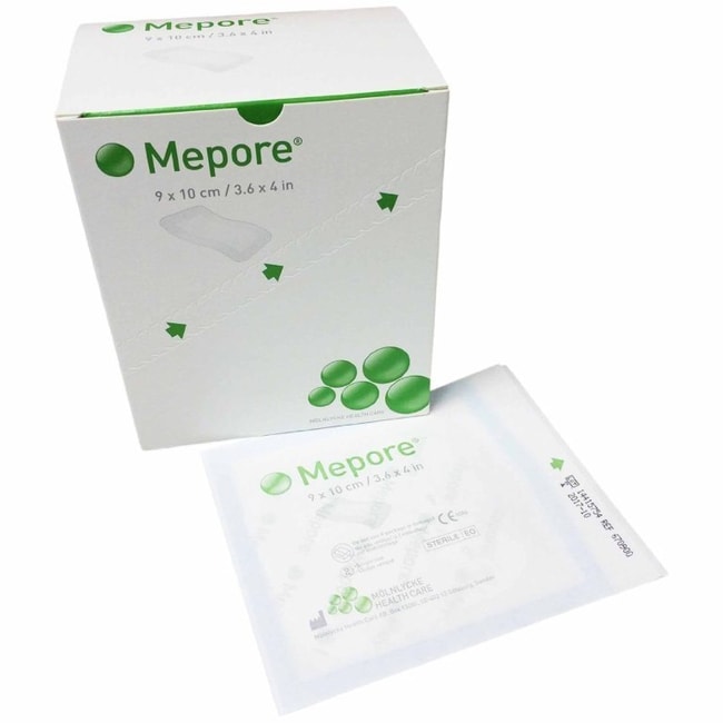 Adhesive Dressing Mepore 3-3/5 X 4 Inch Nonwoven Spunlace Polyester Rectangle White Sterile 670900 400/Case