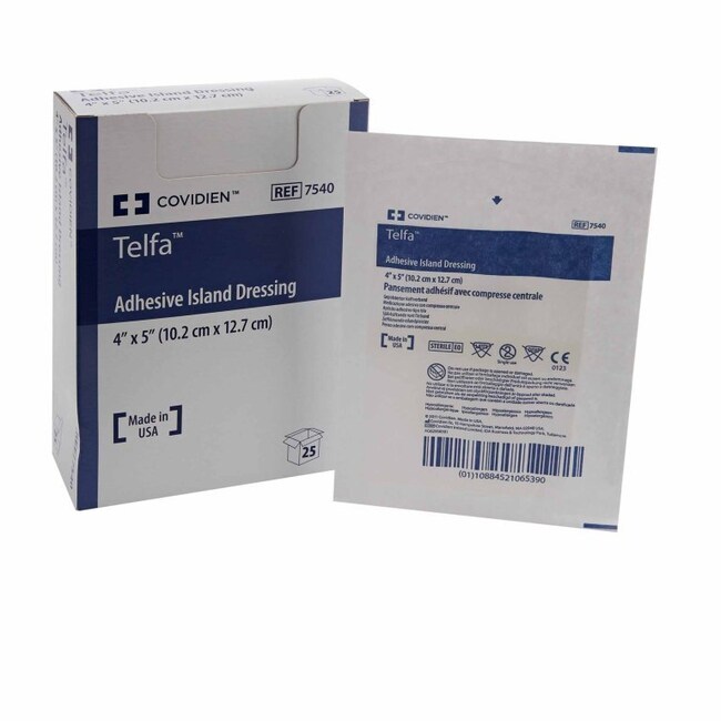 Adhesive Dressing Telfa 4 X 5 Inch Nonwoven Rectangle White Sterile 7540- 25/Carton