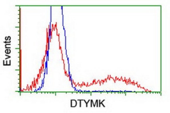 Thymidylate kinase (DTYMK) catalyzes the phosphorylation of dTMP to form dTDP in the dTTP synthesis pathway for DNA synthesis. DTYMK is essential for DNA synthesis and is an important intermediate enzyme in the pathway of many pyrimidine analog drugs, including 5-Fluorouracil (5-FU), the chemotherapeutic drug of choice for several solid tumors. The human DTYMK gene was isolated via functional complementation of a Saccharomyces cerevisiae cell cycle mutant, cdc8. DTYMK mRNA levels and enzyme activities are regulated at the level of cell cycle and cell growth pathways.Specifications