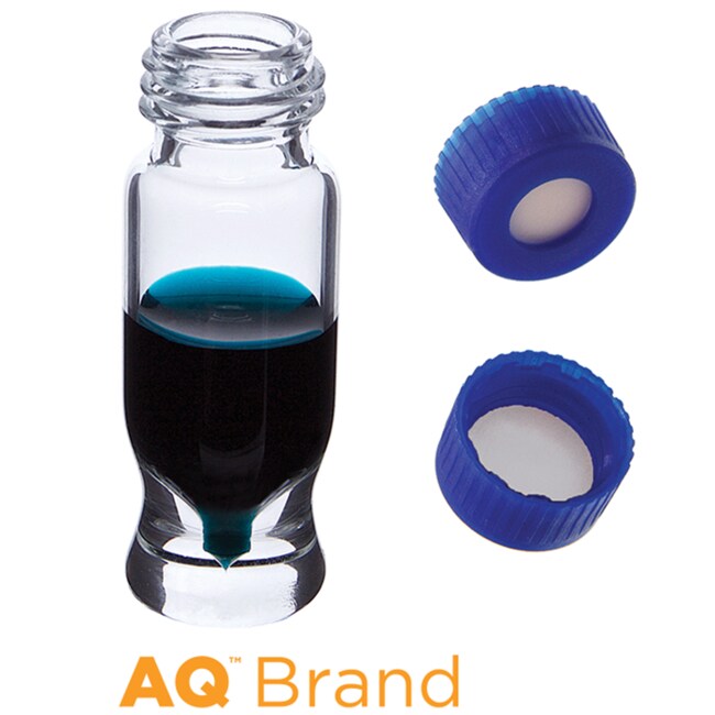 Vial & Cap Kit Includes 100 EA 1.2ml, MRQ, Screw Top, Clear Autosampler Vials and 100 EA matching Screw Caps with Tan Silicone Rubber / White PTFE Septa bonded in the Blue Caps. AQ Brand Easy Purchase Pack. 1/PK.