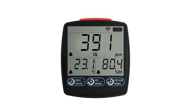 - Measurement parameters include carbon dioxide (CO2), temperature, and humidity.