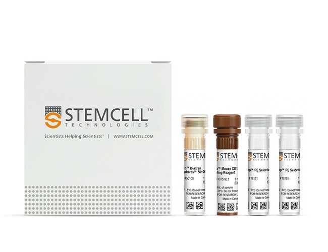 The EasySep™ Mouse CD117 (cKIT) Positive Selection Kit is designed to isolate CD117+ cells from single-cell suspensions of bone marrow by positive selection. The cocktail contains a combination of PE-labeled antibodies that is directed against CD117, which are then recognized by antibody complexes that are directed against PE and dextran. Labeled cells are bound to magnetic particles and separated using an EasySep™ magnet without the use of columns. Cells of interest remain in the tube while unwanted cells are poured off.