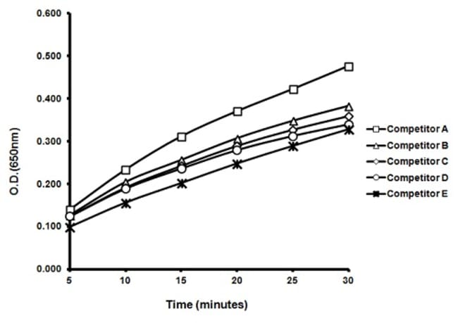 Abcam's TMB ELISA Substrate (High Sensitive) detects horseradish peroxidase (HRP) activity and contains 3,3',5,5'-tetramethylbenzidine in a mildly acidic buffer.