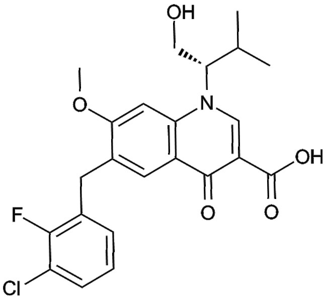 Elvitegravir (GS-9137) is an integrase inhibitor targeting HIV-1 which impedes viral DNA integration during the replication cycle of human immunodeficiency virus type 1 (HIV-1) Its mechanism involves inhibition of the integrase enzyme-mediated DNA strand transfer reaction thereby preventing the insertion of viral genetic material into host genomic DNA and subsequently decreasing viral replication Reported inhibitory concentrations (IC50) against HIV-1 integrase range approximately from 7 to 8 nM Besides its application in HIV-1 research Elvitegravir demonstrates inhibitory effects against other retroviral integrases such as murine leukemia virus (MLV) and simian immunodeficiency virus (SIV) making it suitable for broader antiviral research use
