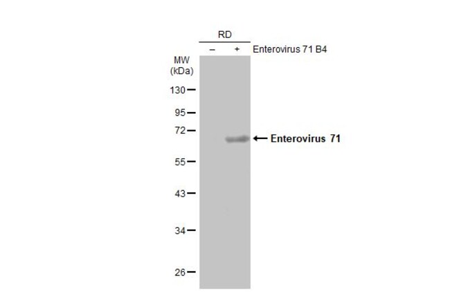 Recommended positive controls: Vero cell lysate infected with EV-71, EV71 C2 infected RD, EV71 B4 infected RD. Store product as a concentrated solution. Centrifuge briefly prior to opening the vial.