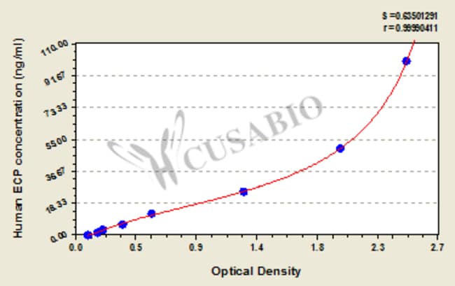 This Human ECP ELISA Kit was designed for the quantitative measurement of Human ECP protein in serum, plasma, tissue homogenates. It is a Sandwich ELISA kit, its detection range is 1.56 ng/mL-100 ng/mL and the sensitivity is 0.39 ng/mL. One kit contains 96 wells.
