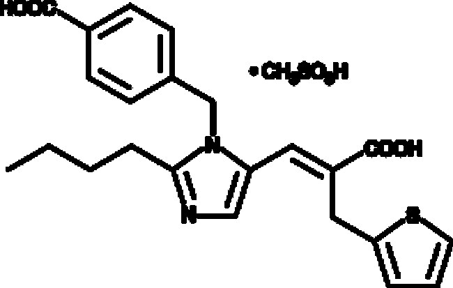 A competitive AT1 receptor antagonist (IC50s 1.4 – 3.9 nM and an elimination half-life of 5 to 7 hours) that blocks angiotensin II receptors on both sympathetic nerve terminals and blood vessels