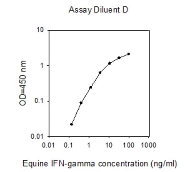 For cell culture supernatants, plasma, and serum samples. Sensitivity: 0.13 ng/ml. Pre-coated 96-well strip plate with additional reagents to allow for use in multiple experiments. Specificity: This ELISA kits detects equine IFN-gamma. This antibody pair has less than 20% cross-reactivity with recombinant canine IFN-gamma is observed, less than 6% cross-reactivity with recombinant feline IFN-gamma and recombinant bovine IFN-gamma is observed, and less than 0.2% cross-reactivity with recombinant human IFN-gamma, recombinant mouse IFN-gamma, recombinant rat IFN-gamma, recombinant porcine IFN-gamma, recombinant rhesus macaque IFN-gamma, and recombinant cotton rat IFN-gamma is observed.