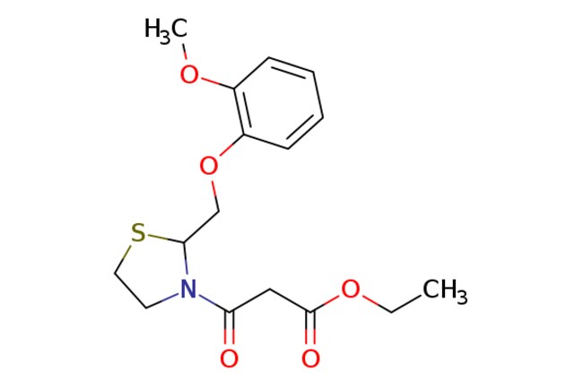 eMolecules Ambeed / Ethyl 3-(2-((2-methoxyphenoxy)methyl)thiazolidin-3-yl)-3-oxopropanoate / 250mg / 552763424 / A981290 / / 119637-67-1 / MFCD00866839 / 339.410 / C16H21NO5S