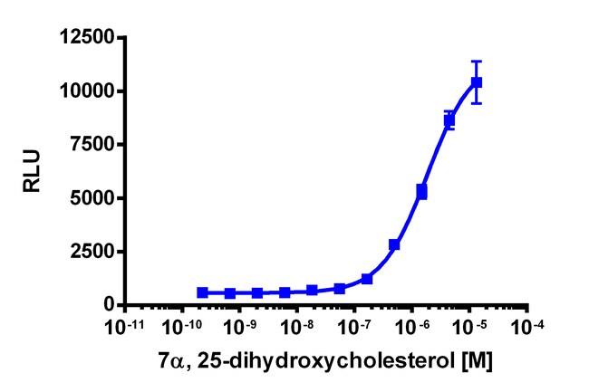 The PathHunter EBI2 eXpress kit provides an easy-to-use cell based assay to study drug candidates (small molecules or biologics) targeting GPCRs. This kit assesses ligand (e.g. hydroxycholesterols) based activation of EBI2 GPCR activity via detection of β-arrestin recruitment. The included cell line overexpresses ProLink-tagged EBI2 and EA-tagged β-Arrestin-2. Activation of EBI2 stimulates the recruitment of β-Arrestin-2 and produces EFC signal. eXpress kits are a convenient, ready-to-use format which contains all materials needed to run the assay, including single-use vials of cryopreserved cells, cell plating media, detection reagent, and assay plates. For detailed product information, User Manual and Datasheet, visit www.discoverx.com/express.