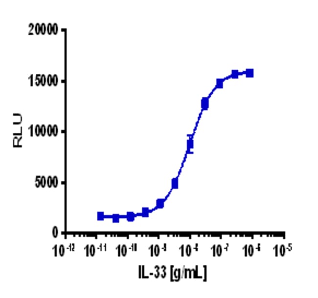 The PathHunter IL1RL1/IL1RAP Dimerization eXpress kit provides an easy-to-use cell based assay to study drug candidates (small molecules or biologics) targeting receptor-receptor interaction. This kit assesses ligand (e.g. IL-33) induced dimerization of IL1RL1/IL1RAP receptors. This product uses EFC technology. The cell line included overexpresses IL1RL1 target protein fused to PK alongside IL1RAP target protein fused to EA. Upon ligand-induced dimerization of IL1RL1/IL1RAP, detectable EFC signal is produced. eXpress kits are a convenient, ready-to-use format which contains all materials needed to run the assay, including single-use vials of cryopreserved cells, cell plating media, detection reagent, and assay plates. For detailed product information, User Manual and Datasheet, visit www.discoverx.com/express.