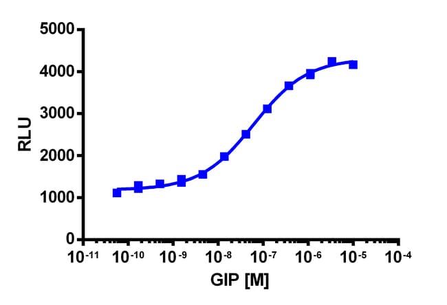 The PathHunter mGIPR eXpress kit provides an easy-to-use cell based assay to study drug candidates (small molecules or biologics) targeting GPCRs. This kit assesses ligand (e.g. GIP) based activation of mGIPR GPCR activity via detection of β-arrestin recruitment. The included cell line overexpresses ProLink-tagged mGIPR and EA-tagged β-Arrestin-2. Activation of mGIPR stimulates the recruitment of β-Arrestin-2 and produces EFC signal. eXpress kits are a convenient, ready-to-use format which contains all materials needed to run the assay, including single-use vials of cryopreserved cells, cell plating media, detection reagent, and assay plates. Please note that this product expresses the Mouse version of this protein. For detailed product information, User Manual and Datasheet, visit www.discoverx.com/express.