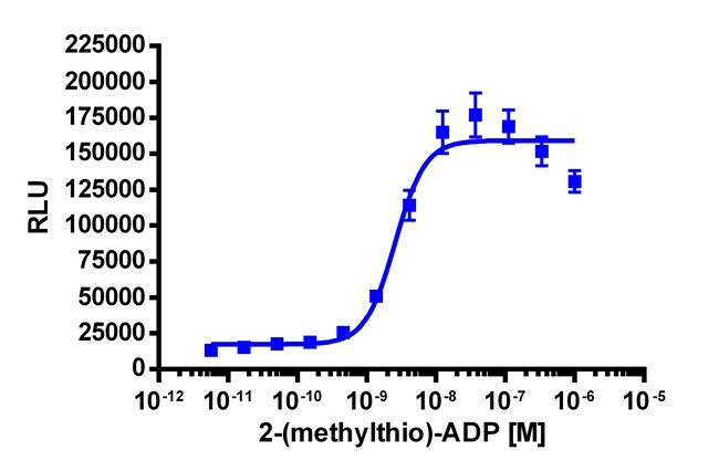 The PathHunter mP2RY12 eXpress kit provides an easy-to-use cell based assay to study drug candidates (small molecules or biologics) targeting GPCRs. This kit assesses ligand (e.g. ATP) based activation of mP2RY12 GPCR activity via detection of β-arrestin recruitment. The included cell line overexpresses ProLink-tagged mP2RY12 and EA-tagged β-Arrestin-2. Activation of mP2RY12 stimulates the recruitment of β-Arrestin-2 and produces EFC signal. eXpress kits are a convenient, ready-to-use format which contains all materials needed to run the assay, including single-use vials of cryopreserved cells, cell plating media, detection reagent, and assay plates. Please note that this product expresses the Mouse version of this protein. For detailed product information, User Manual and Datasheet, visit www.discoverx.com/express.