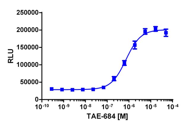 The InCELL Hunter eXpress PYK2 Kinase Binding Assay provides an easy-to-use cell based assay to study small molecule drug candidates that engage with kinases. This kit assesses compound-engagement-based stabilization of PYK2 via detection of PYK2 levels. This product uses EFC technology. The cell line included overexpresses PYK2 target protein fused to ProLabel. In the absence of compound that binds and stabilizes the target, this protein is degraded and no EFC signal is produced. When compound engages and stabilizes the target, EA contained in the detection reagent produces EFC signal. eXpress kits are a convenient, ready-to-use format which contains all materials needed to run the assay, including single-use vials of cryopreserved cells, cell plating media, detection reagent, and assay plates. For detailed product information, User Manual and Datasheet, visit www.discoverx.com/express.