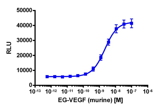 The PathHunter rPROKR2 eXpress kit provides an easy-to-use cell based assay to study drug candidates (small molecules or biologics) targeting GPCRs. This kit assesses ligand (e.g. prokineticin) based activation of rPROKR2 GPCR activity via detection of β-arrestin recruitment. The included cell line overexpresses ProLink-tagged rPROKR2 and EA-tagged β-Arrestin-2. Activation of rPROKR2 stimulates the recruitment of β-Arrestin-2 and produces EFC signal. eXpress kits are a convenient, ready-to-use format which contains all materials needed to run the assay, including single-use vials of cryopreserved cells, cell plating media, detection reagent, and assay plates. Please note that this product expresses the Rat version of this protein. For detailed product information, User Manual and Datasheet, visit www.discoverx.com/express.