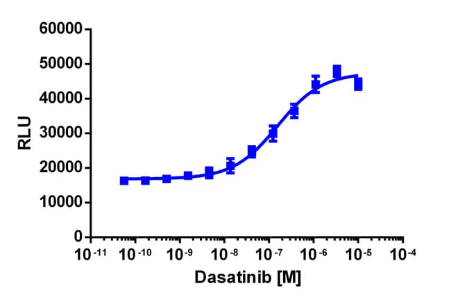 The InCELL Hunter eXpress SIK1 Kinase Binding Assay provides an easy-to-use cell based assay to study small molecule drug candidates that engage with kinases. This kit assesses compound-engagement-based stabilization of SIK1 via detection of SIK1 levels. This product uses EFC technology. The cell line included overexpresses SIK1 target protein fused to ProLabel. In the absence of compound that binds and stabilizes the target, this protein is degraded and no EFC signal is produced. When compound engages and stabilizes the target, EA contained in the detection reagent produces EFC signal. eXpress kits are a convenient, ready-to-use format which contains all materials needed to run the assay, including single-use vials of cryopreserved cells, cell plating media, detection reagent, and assay plates. For detailed product information, User Manual and Datasheet, visit www.discoverx.com/express.