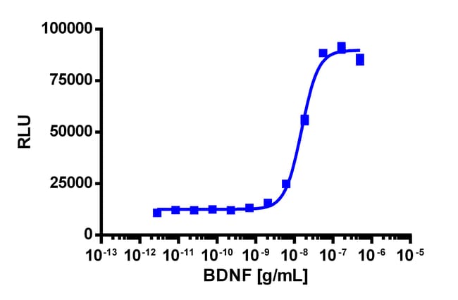 The PathHunter eXpress TrkB Functional Assay provides an easy-to-use cell based assay to study drug candidates (small molecules or biologics) targeting RTKs. This kit assesses RTK activation via detection of activated TrkB dimerization-induced SH2 domain protein recruitment. This product uses EFC technology. The included cell line overexpresses ProLink-tagged TrkB and an EA-tagged SH2 domain protein. Upon ligand-induced receptor activation, SH2-EA recruitment leads to production of EFC signal. eXpress kits are a convenient, ready-to-use format which contains all materials needed to run the assay, including single-use vials of cryopreserved cells, cell plating media, detection reagent, and assay plates. For detailed product information, User Manual and Datasheet, visit www.discoverx.com/express.