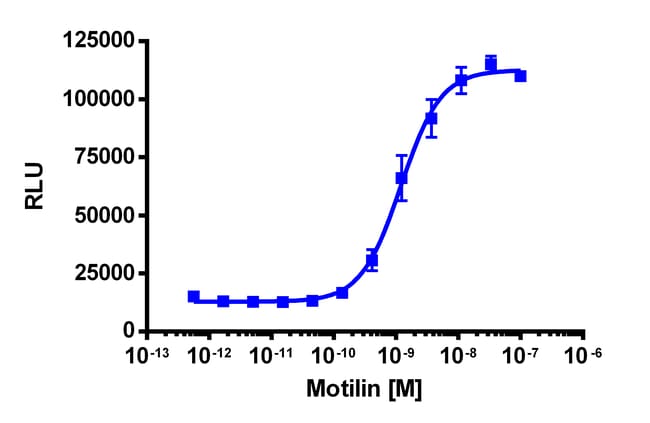 The PathHunter MLNR eXpress kit provides an easy-to-use cell based assay to study drug candidates (small molecules or biologics) targeting GPCRs. This kit assesses ligand (e.g. motilin) based activation of MLNR GPCR activity via detection of β-arrestin recruitment. The included cell line overexpresses ProLink-tagged MLNR and EA-tagged β-Arrestin-2. Activation of MLNR stimulates the recruitment of β-Arrestin-2 and produces EFC signal. eXpress kits are a convenient, ready-to-use format which contains all materials needed to run the assay, including single-use vials of cryopreserved cells, cell plating media, detection reagent, and assay plates. For detailed product information, User Manual and Datasheet, visit www.discoverx.com/express.