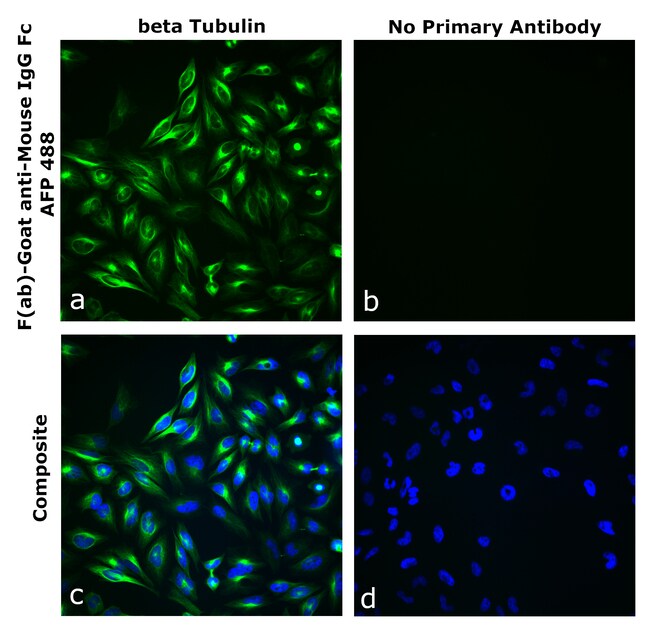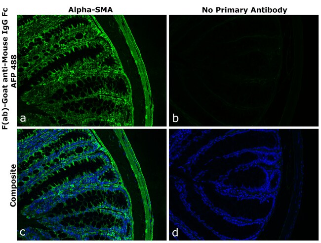 F(ab)-Goat anti-Mouse IgG Fc Superclonal™ Recombinant Secondary Antibody, Alexa Fluor™ Plus 488 is very specific to Mouse Fc region and can detect Mouse IgG1,2a,2b. It showed no cross-reactivity to various species immunoglobulins tested. This Fab fragment antibody is expressed in vitro and purified as a recombinant construct. It is also engineered to deliver enhanced stability and sensitivity. The advantages of recombinant antibodies include-better specificity, animal origin-free formulation, and lot-to-lot consistency. F(ab) fragments offer several advantages over full-length IgGs due to their smaller molecular size (~50 kDa vs. ~150 kDa), such as improved tissue penetration. The absence of the Fc region reduces nonspecific binding and background staining in Fc receptor-expressing cells and tissues, while also enabling increased flexibility in multiplexing assays. Alexa Fluor™ Plus dyes have been chemically optimized to provide higher signal to noise ratios and minimized cross-reactivity to help detect low-abundance targets in rare or precious samples. It is recommended that the antibody be carefully titrated for optimal performance in the assay of interest.
