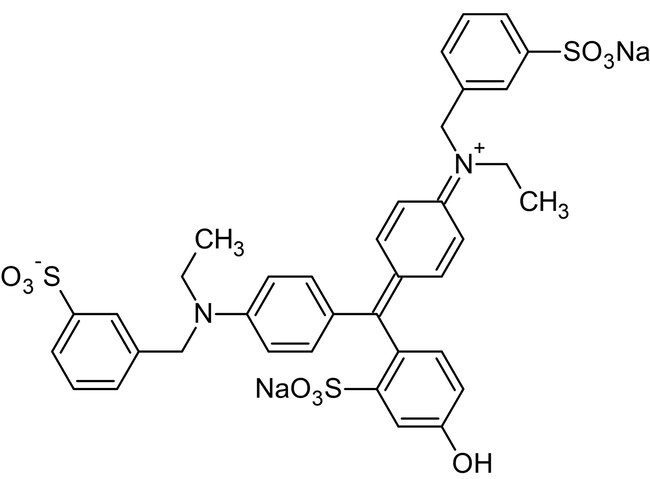 MW 808.86 g/mol. Widely utilized tissue and protein stain. Used as a quantitative stain for histones at alkaline pH after acid extraction of DNA and as a protein stain in IEF (isoelectric focusing) and SDS-PAGE electrophoresis. Fluoresces in the near-infrared (NIR). Recommended as a replacement for Light Green SF yellowish in Masson's trichrome as its color is more brilliant and less likely to fade. Also used as a food dye.