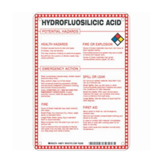 Brady™ Fiberglass Hazard Sign: HYDROFLUORSILICIC ACID POTENTIAL HAZARDS