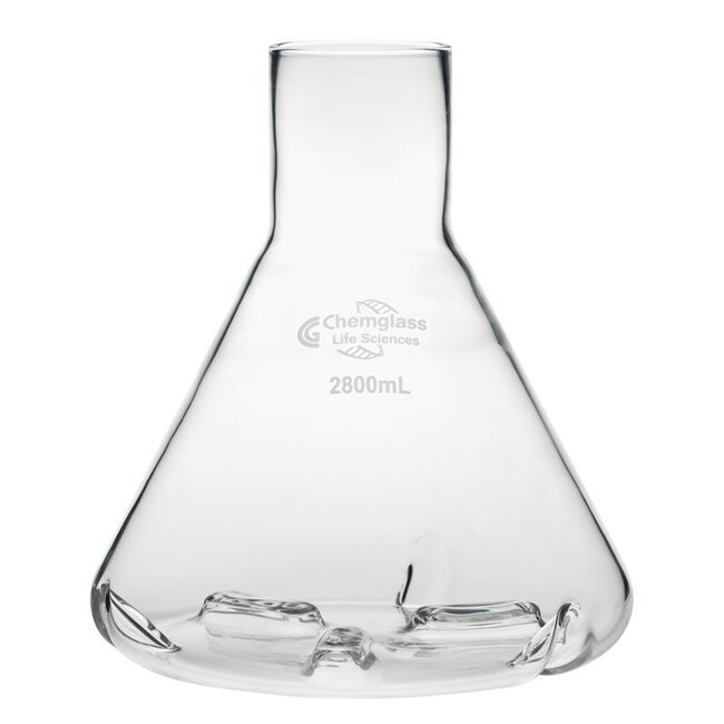 Chemglass Life Sciences Flask, Fernbach, 2800mL, Plain 59mm ID Top, Side and Bottom Baffles, Approx OD x Height (mm): 210 x 230