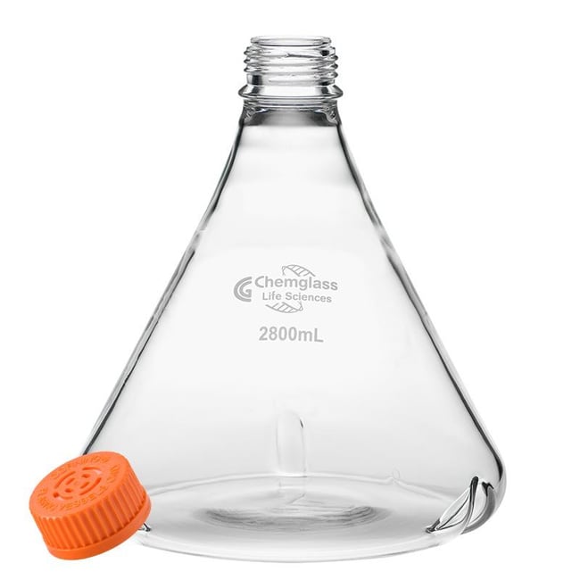 Chemglass Life Sciences Flask, Fernbach, 2800mL, GL-45 Thread, 3 Side Baffles, Vented Cap, Approx OD x Height (mm): 210 x 230
