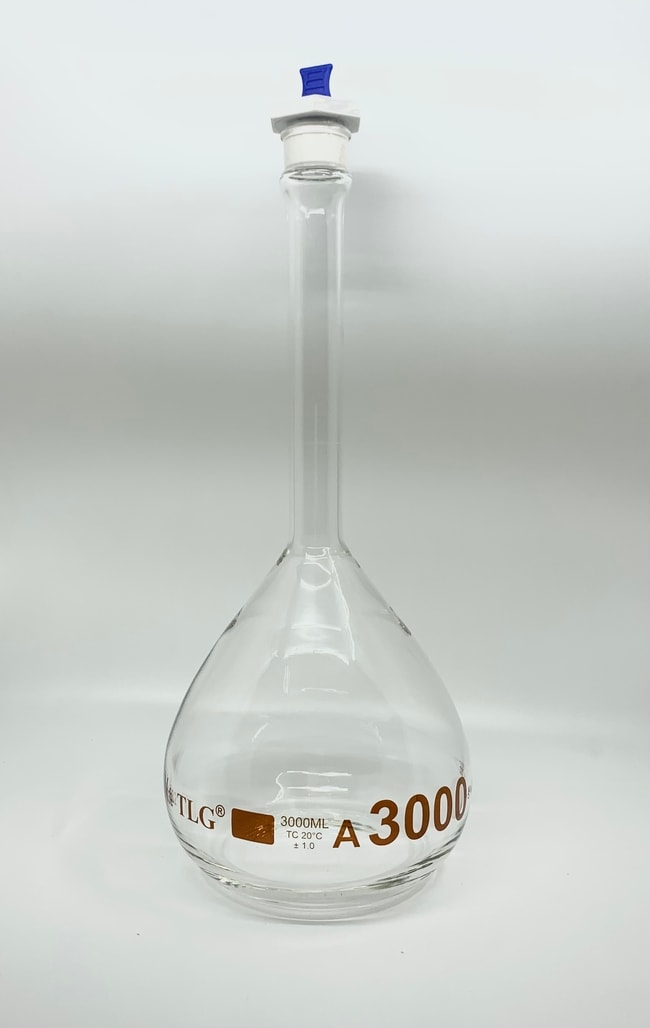 CHEMSCIENCE Volumetric Flask, 3000mL, Serialized and Certified, Heavy Duty, Wide Mouth, PE Stopper# 32, Class A,PK/2