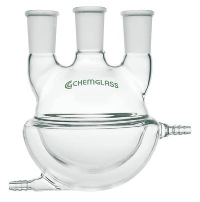 Chemglass Life Sciences Flask, Round Bottom, 100mL, Heavy Wall, 3-Neck, 24/40 CN - 24/40 SN's, Vertical, Half Jacketed